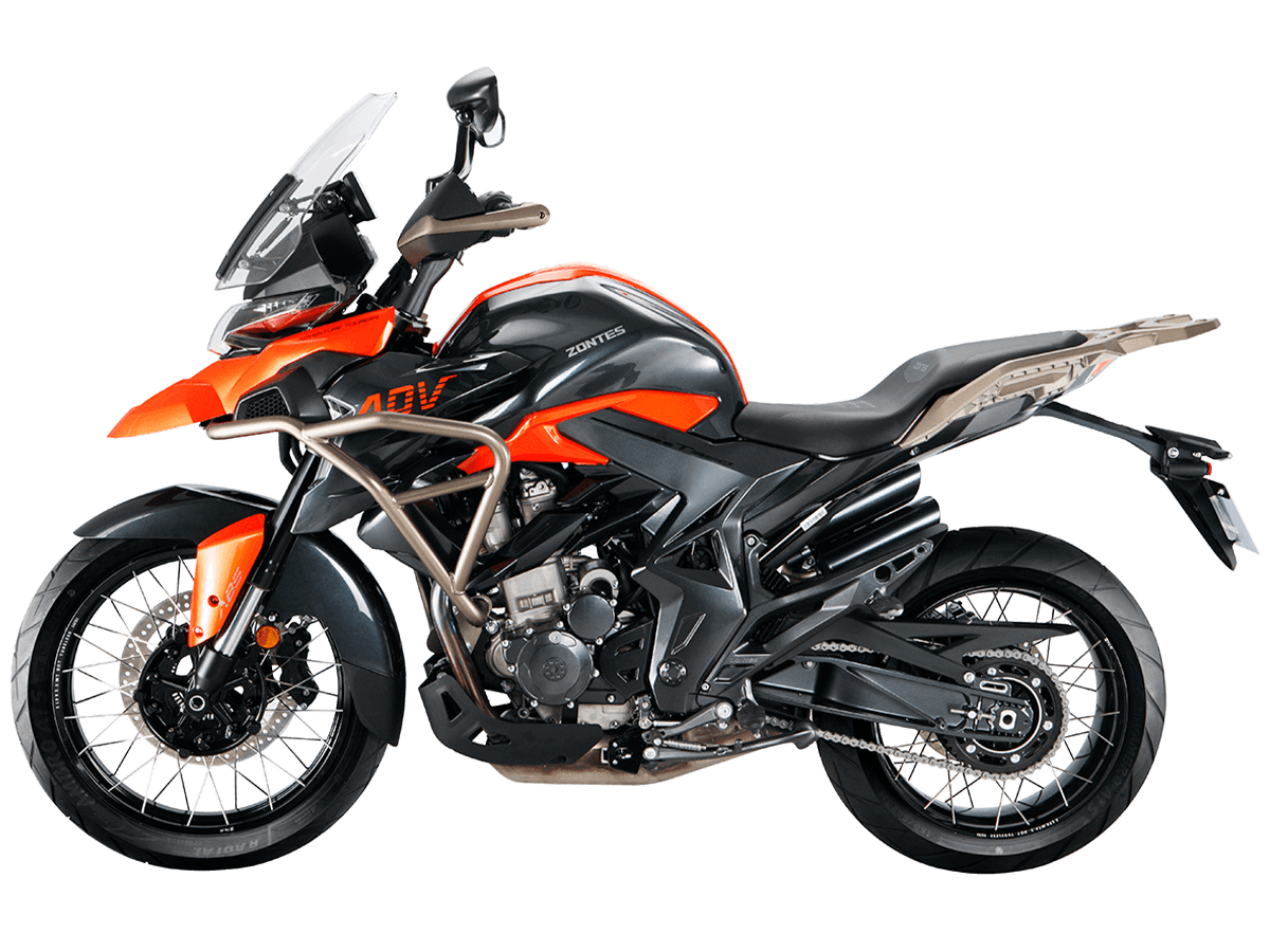 Мотоцикл ZONTES ZT350-T – современный турэндуро со стремительным агрессивным дизайном. Одинаково хорош как для городских заездов, так и для дальних туров. • Прошёл путешествие из Москвы на Эльбрус • Номинант премии КикСтартер 2024 Силовая установка представлена одноцилиндровым 4-тактным двигателем ZT184MP с 4 клапанами и 2 верхними распредвалами. Двигатель имеет объём 348 см³ и обеспечивает мощность в 39 л.с. Оснащён инжектором BOSCH и системой жидкостного охлаждения. Механическая коробка передач имеет 6 ступеней и схему 1-N-2-3-4-5-6. Запуск двигателя осуществляется с помощью бесключевого доступа. Ёмкость топливного бака 19 литров. Колёса представлены литыми алюминиевыми дисками диаметром 19 дюймов спереди и 17 дюймов сзади. На мотоцикл установлены датчики давления в шинах, показатели от которых выводятся на приборную панель. Для подвески спереди используется телескопическая вилка, сзади – моноамортизатор. Гидравлические дисковые тормоза произведены испанской компанией J.JUAN, входящей в холдинг BREMBO. Мотоцикл оснащён клеткой для защиты двигателя и защитой кистей рук. За пассажирским сиденьем расположен багажник. Для освещения используется яркая LED-оптика, а приборная панель представлена цифровым дисплеем. Имеется 2 USB-порта. Габариты мотоцикла 2135х850х1360 мм. Колёсная база 1390 мм. Высота по седлу 830 мм. Вес 179 кг. Комплектация и внешний вид мотоцикла могут отличаться в зависимости от поставки. Изображение на сайте не гарантирует наличие тех или иных опций. Уточняйте информацию при оформлении заказа.