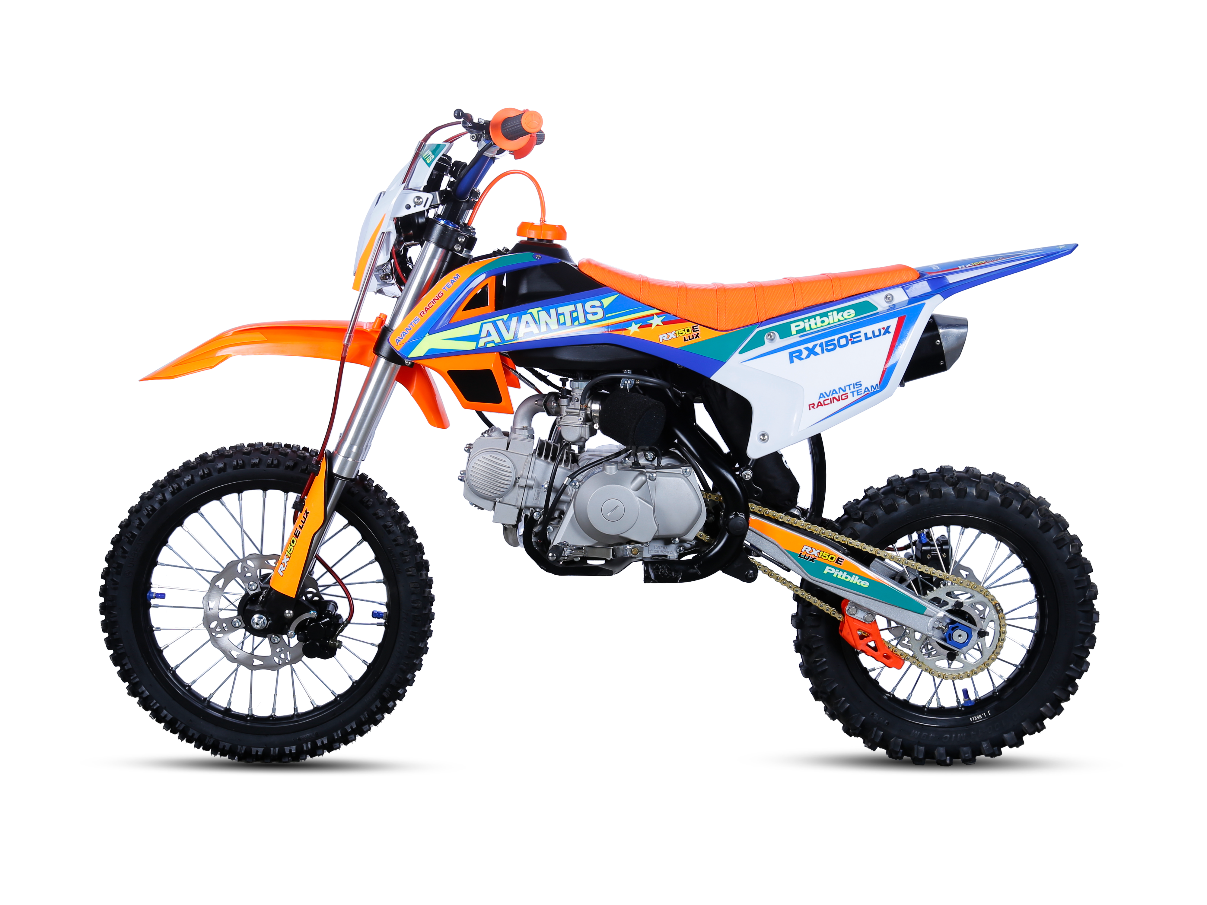 В базе — всё, что нужно: прочные алюминиевые обода, защита двигателя, алюминиевый натяжитель цепи, пластиковая защита тормозного цилиндра, буксаторы, а также яркая фара и LED-балка. В отличие от младших моделей линейке Avantis RX 150E Lux комплектуется электростартером, а не киком, поэтому пуск двигателя осуществляется с кнопки.