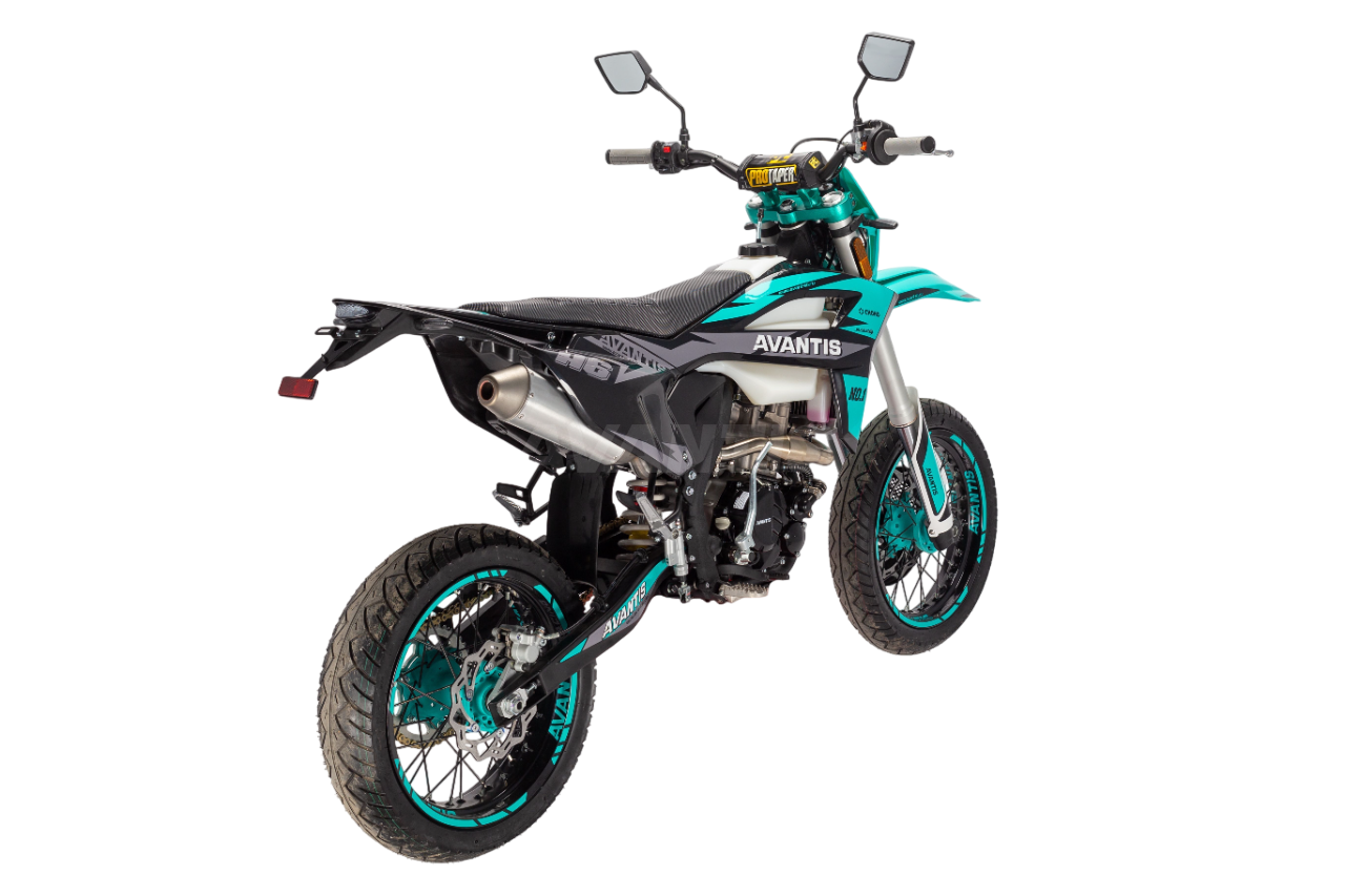 За внедорожный потенциал здесь отвечает классическая для полноразмерных эндуро компоновка с характерной высокой посадкой. Комбинация энергоёмкой подвески с колёсной базой в 1460 мм и дорожным просветом в 350 мм обеспечивает отличную проходимость по пересечённой местности. В этом им помогают лёгкие и прочные алюминиевые обода Unison, обутые во внедорожную резину с редкой шашкой. В модельном ряду представлены разные комплектации Avantis A6, среди которых вы легко сможете найти тот Avantis A6, который подходит именно вам — чистокровный внедорожник, городской мотард или универсальный эндуро с ПТС.